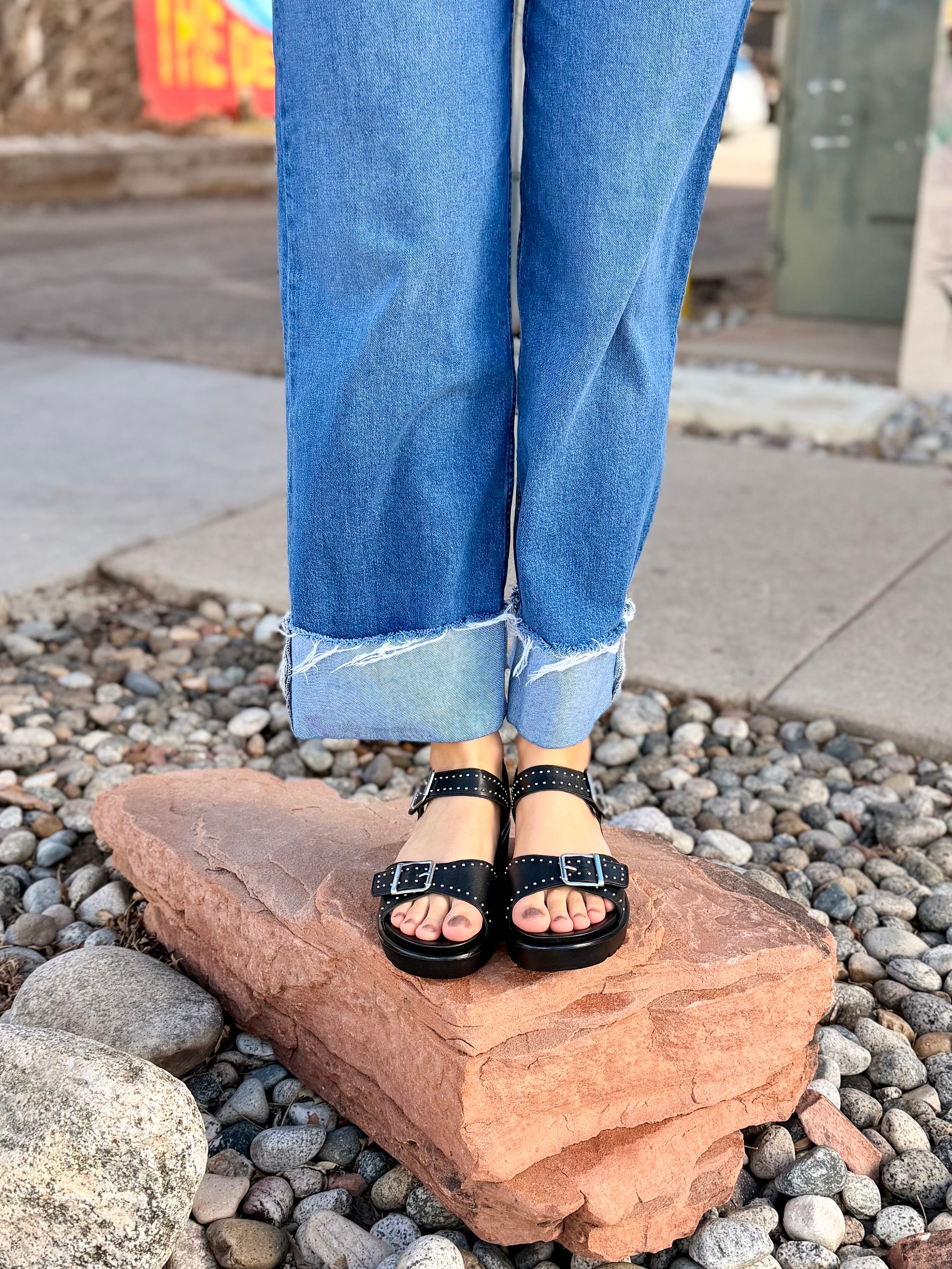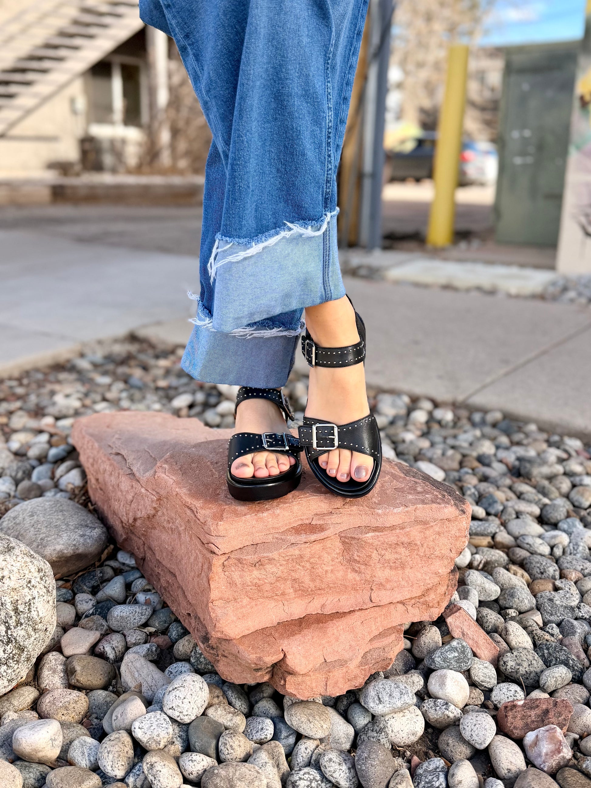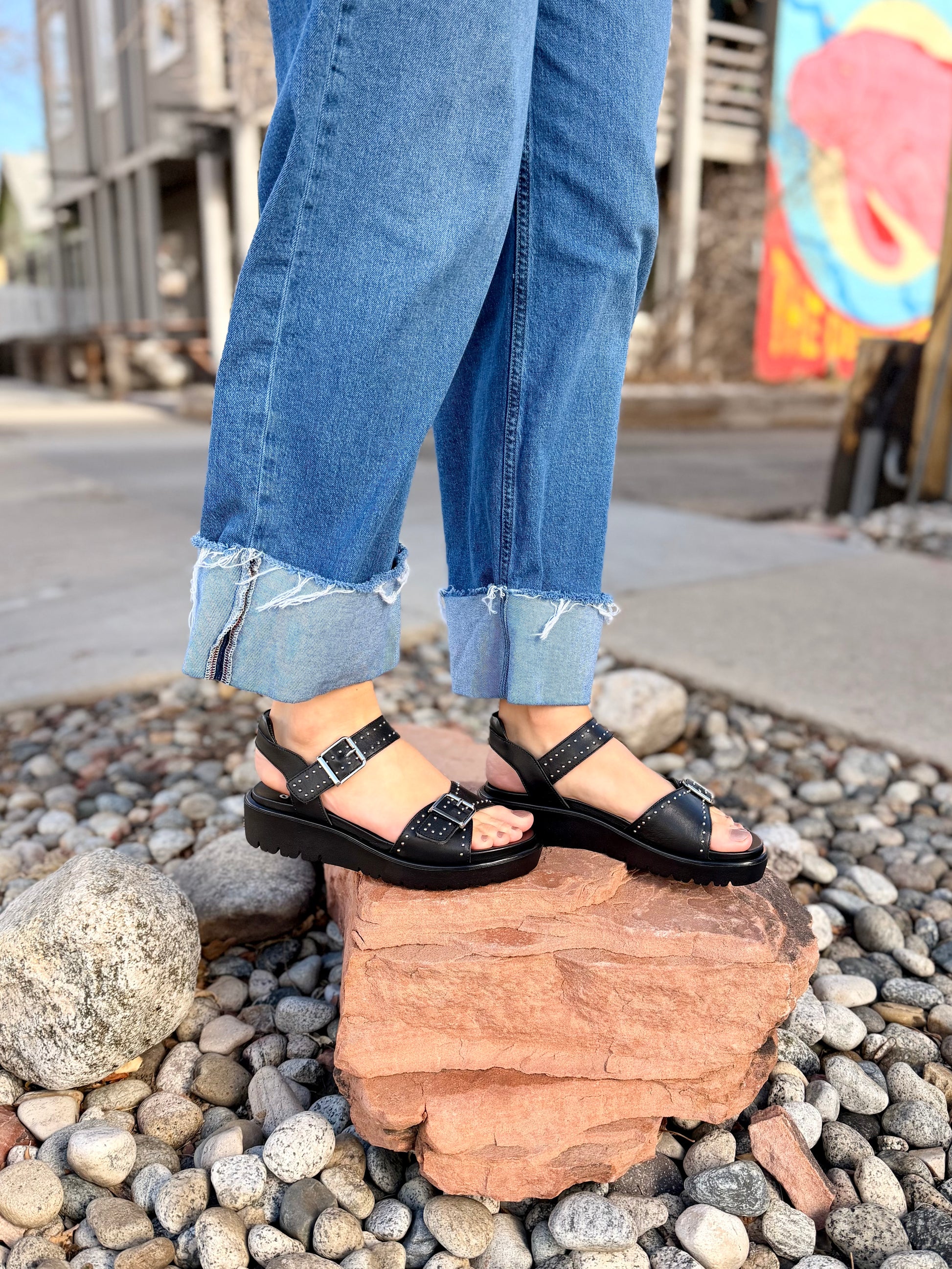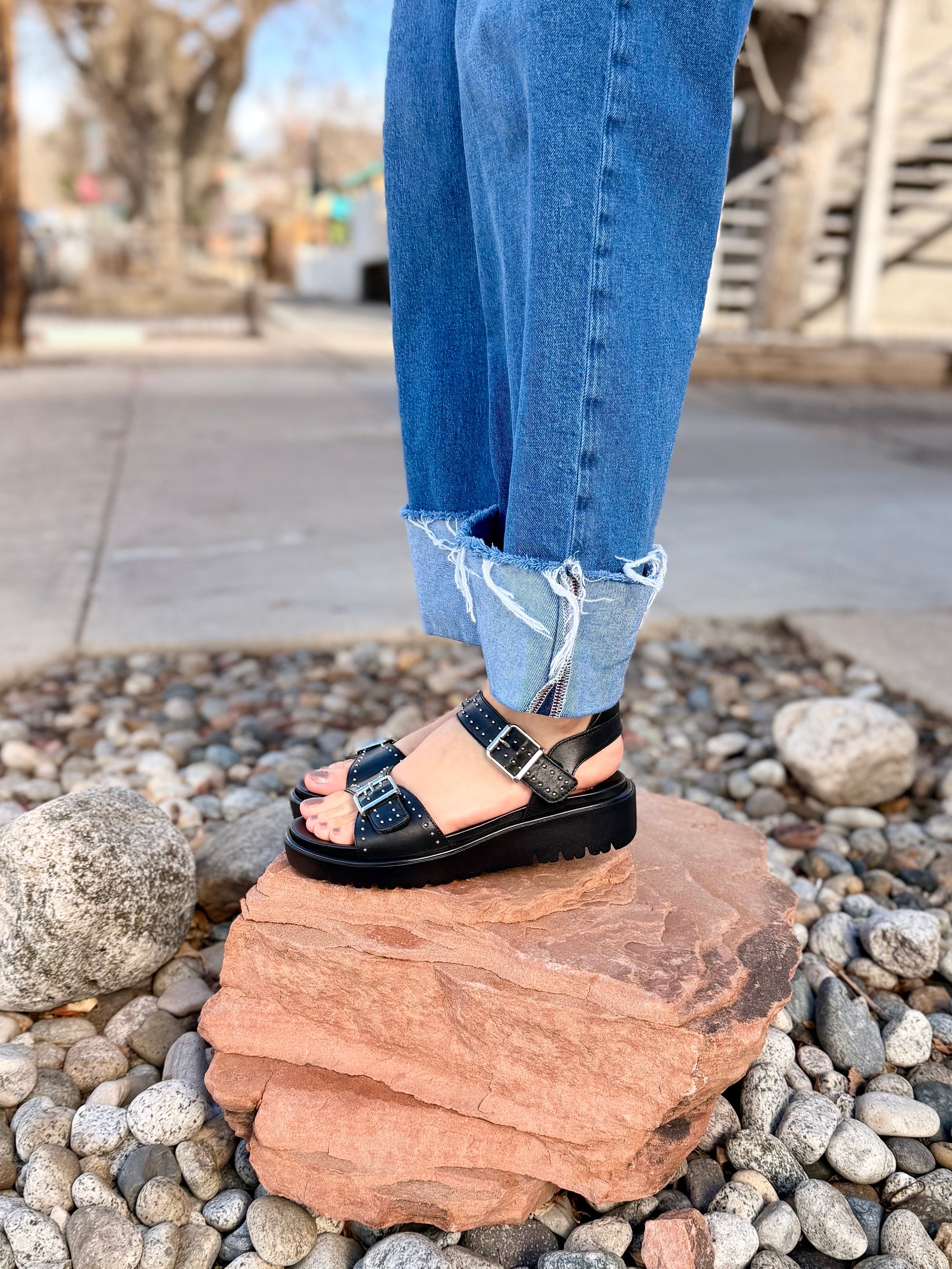 - Studded leather upper