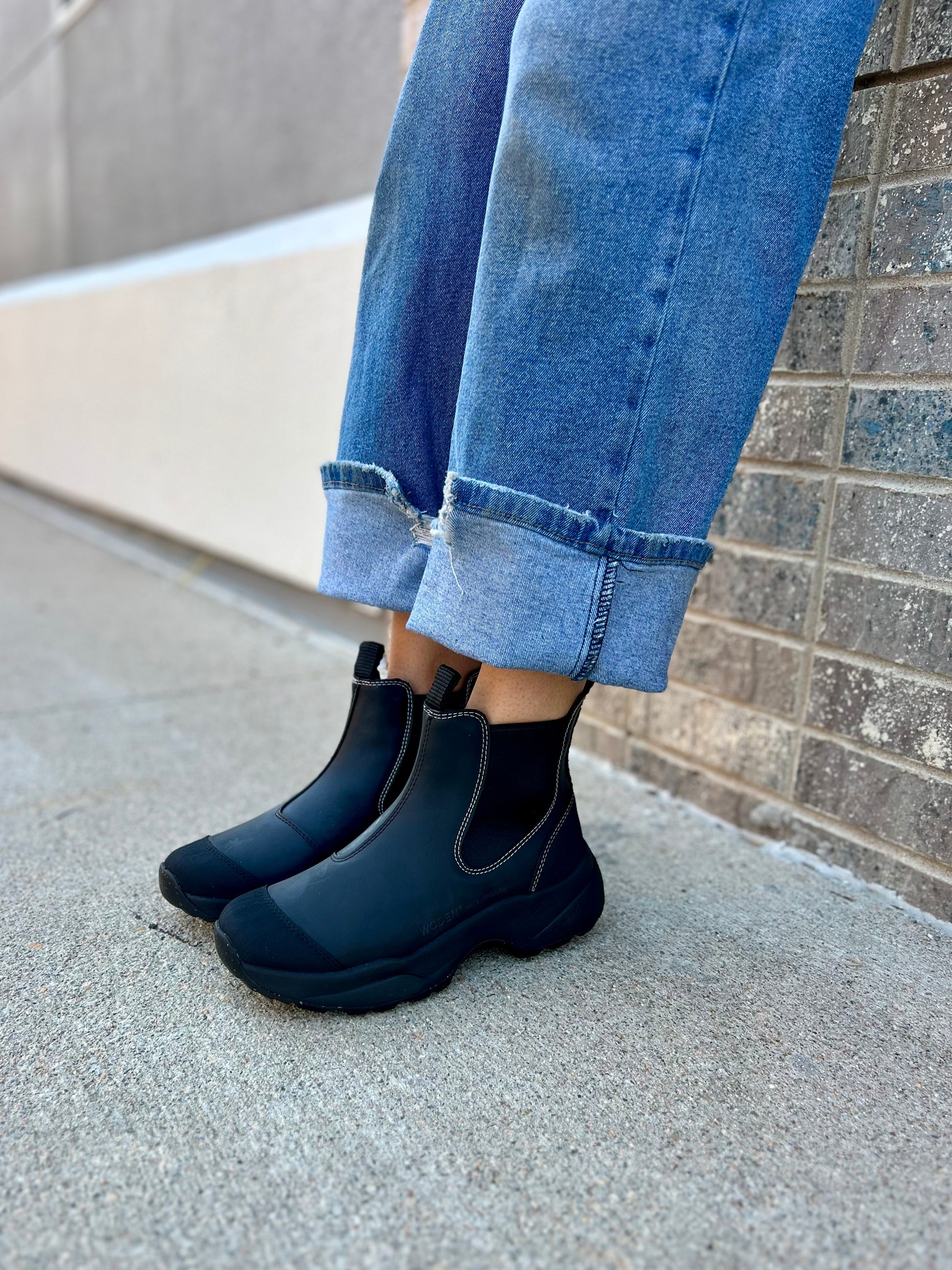 - Waterproof rubber upper with fish leather details