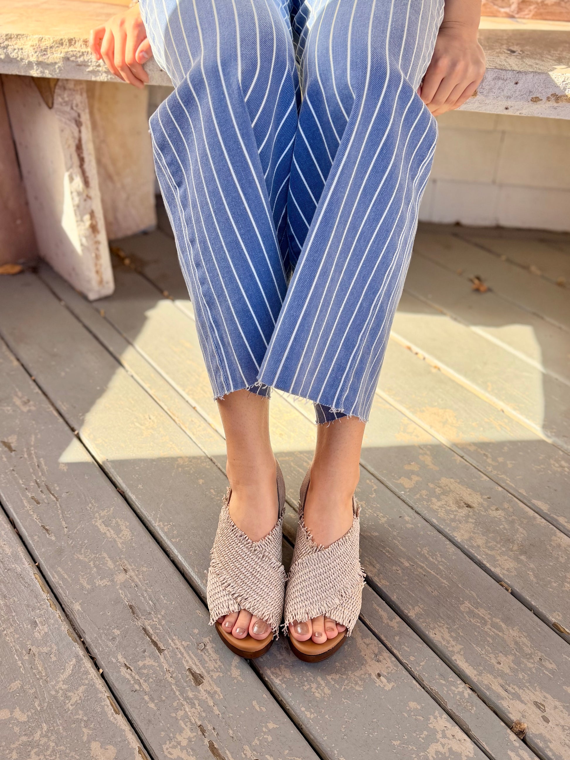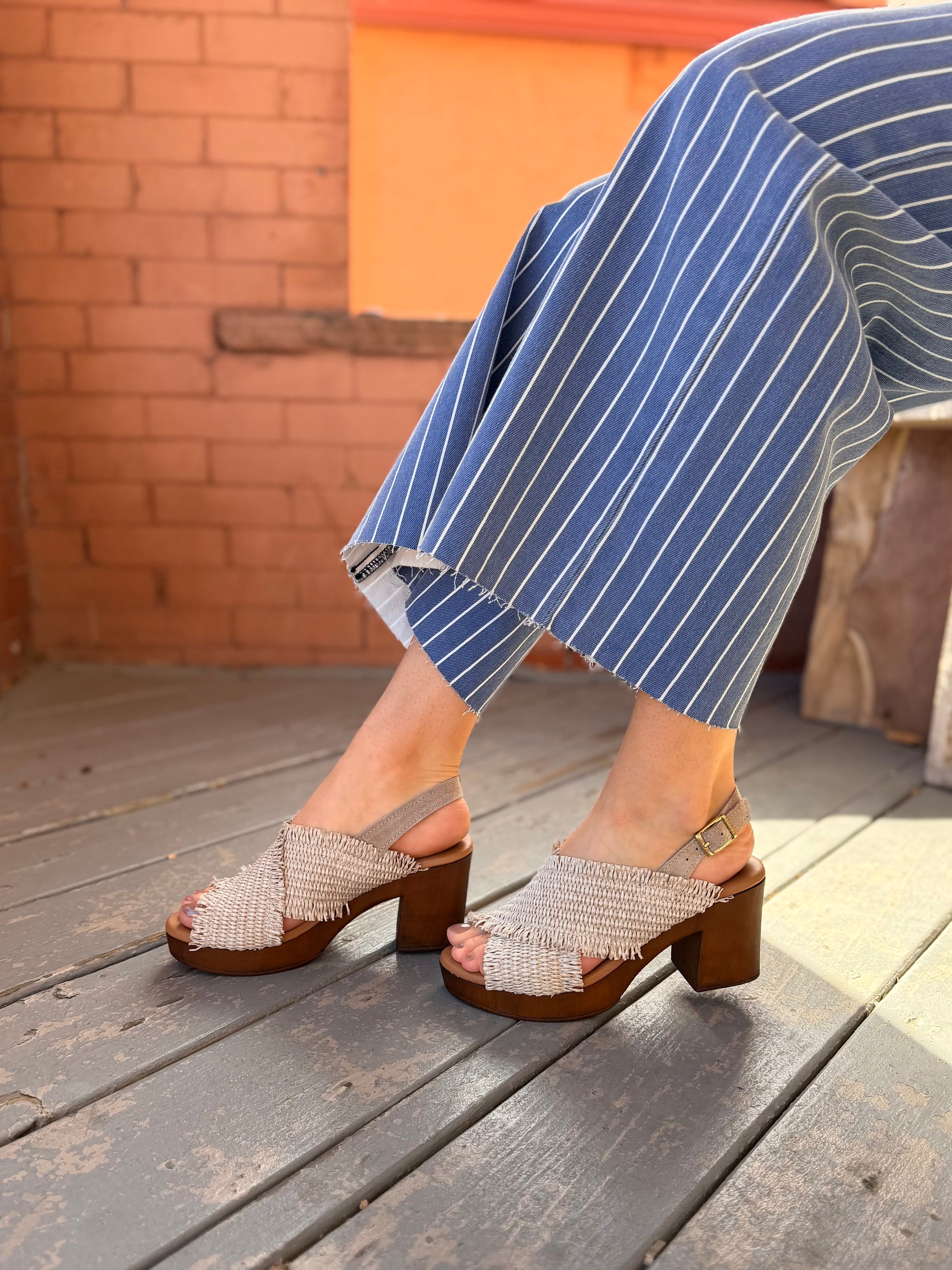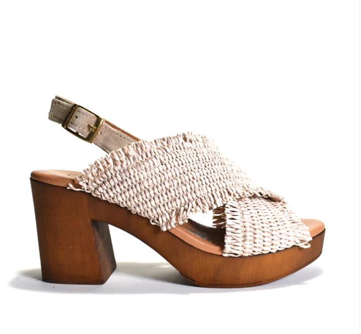 - Woven raffia upper